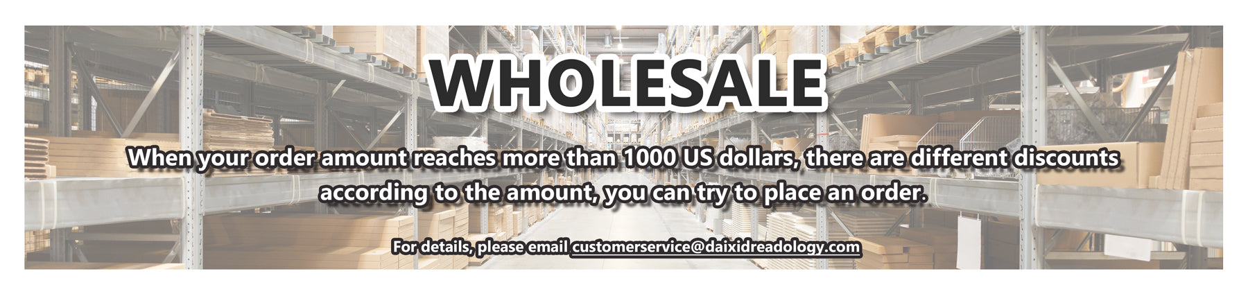 When your order amount reaches more than 1000 $, there are different discounts according to the amount, you can try to place an order. For details, please email:customerservice@daixidreadology.com