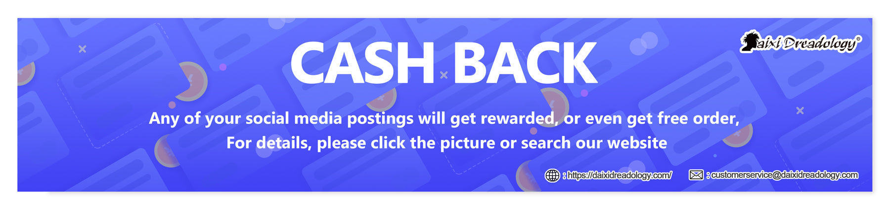 Any of your social media postings will get rewarded, or even get free order, For details, please click the picture or search our website Crash Back