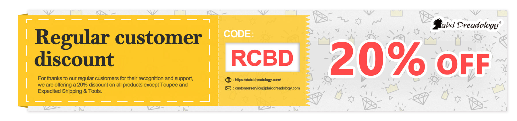 To thanks to our regular customers for their recognition and support, we are offering a 20% discount on all products except Toupee and Expedited Shipping & Tools.
