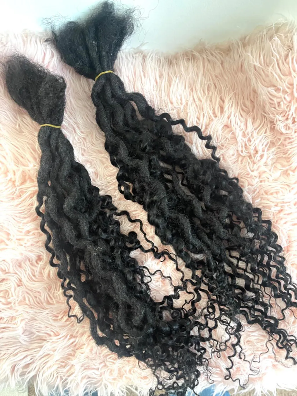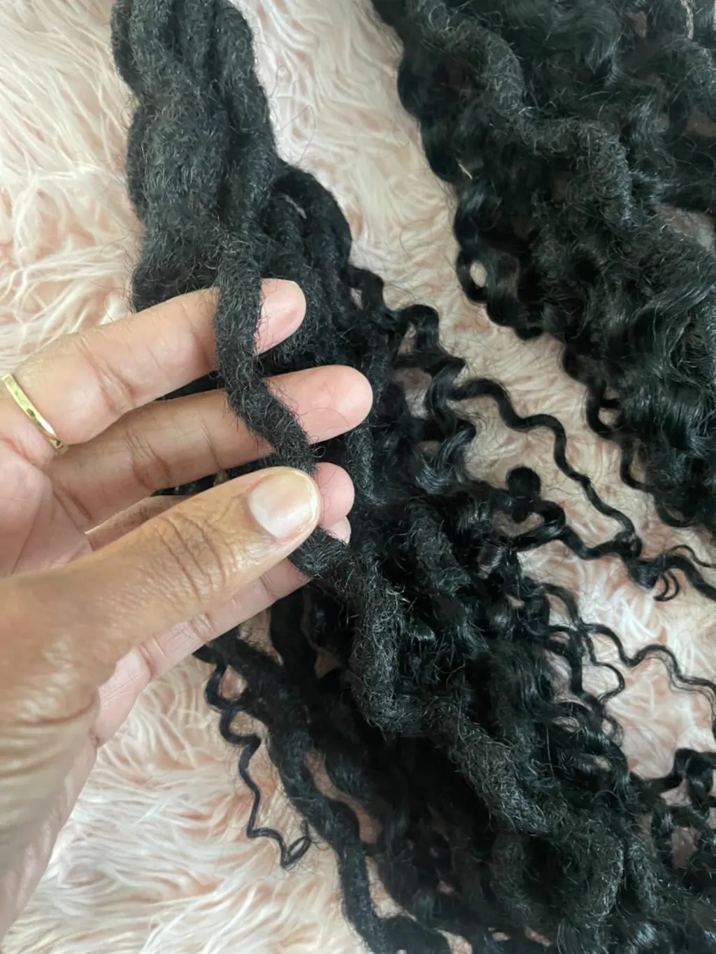 Boho Dreadlocks Extensions with Curly Ends Afro Human Hair Handmade Goddess Locs 0.6cm Thickness Natural Black
